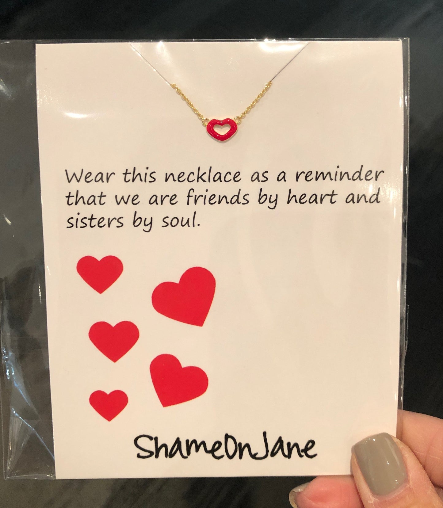Enamel Heart Necklace on a Friendship Card