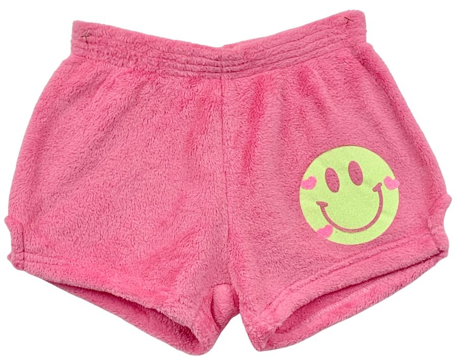 Pajama Shorts (girls) - Solid Shorts with Yellow Glitter Smiley & Hearts
